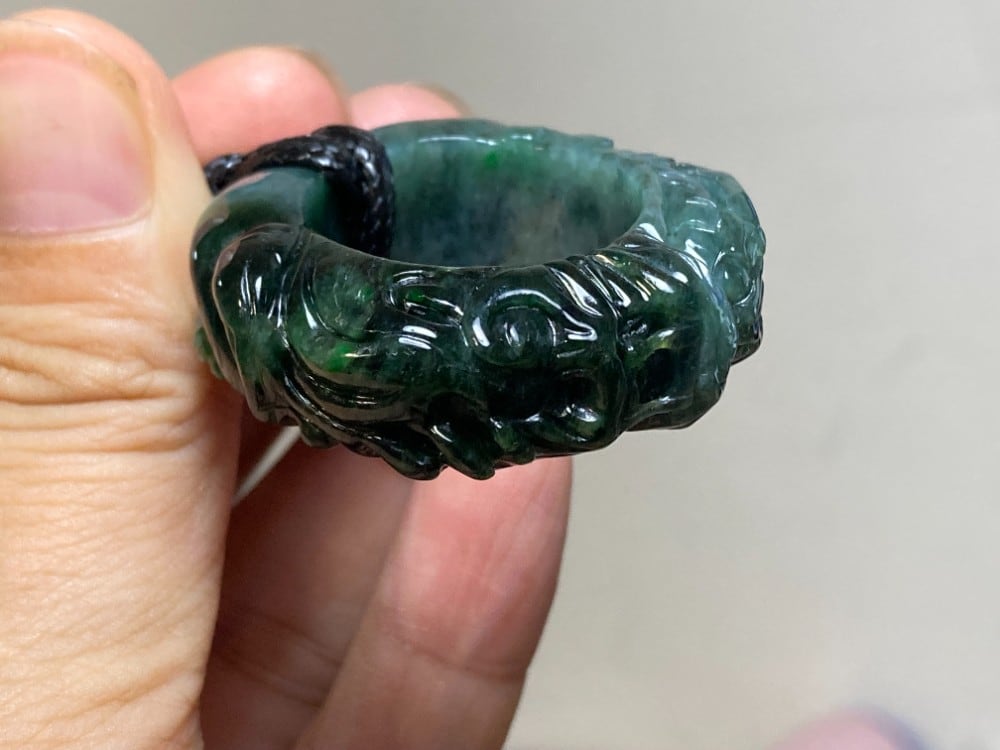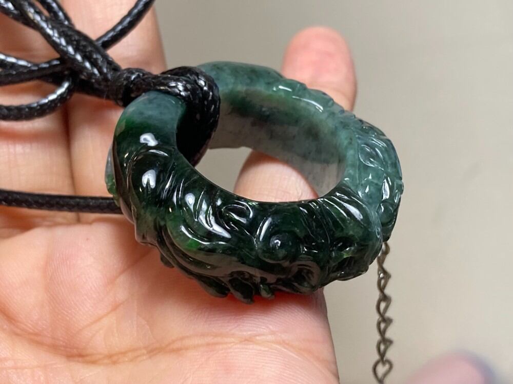 RS7-188 一点物 手彫り 青龙護主 平安御守 ネックレス 29.0号 リング ミャンマー産 天然 A貨 本翡翠