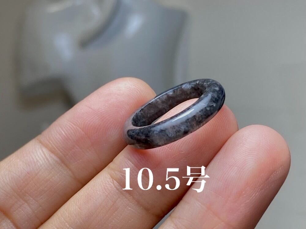 L7-118 美品 黒翡翠 10.5号 ミャンマー産天然 A貨 本翡翠 くりぬき リング