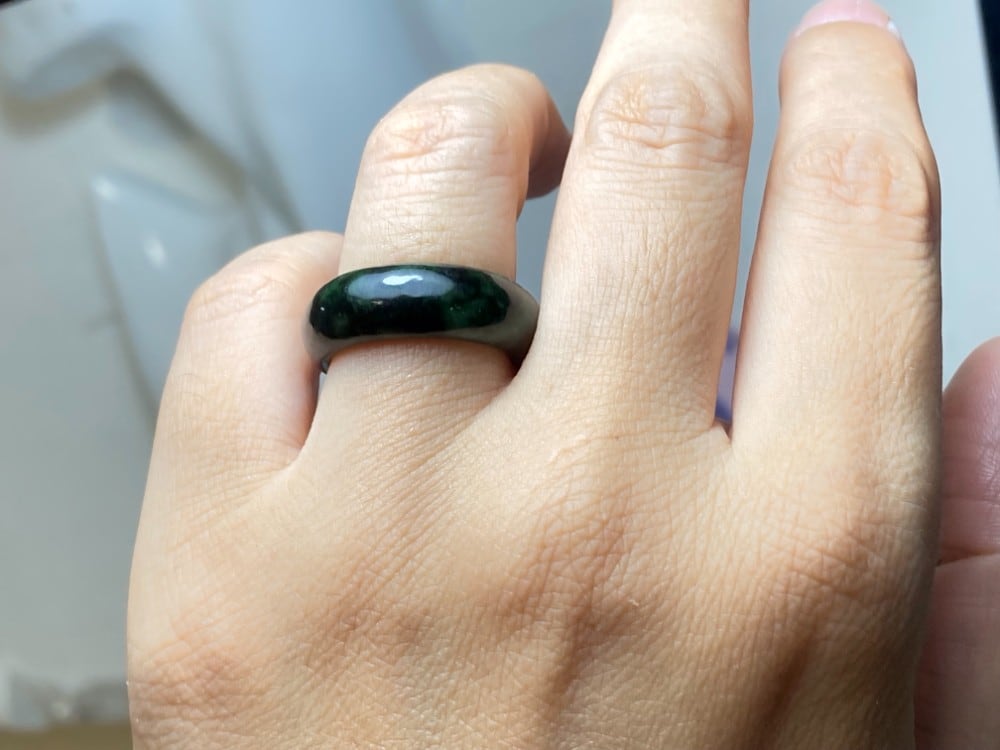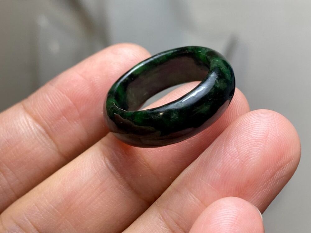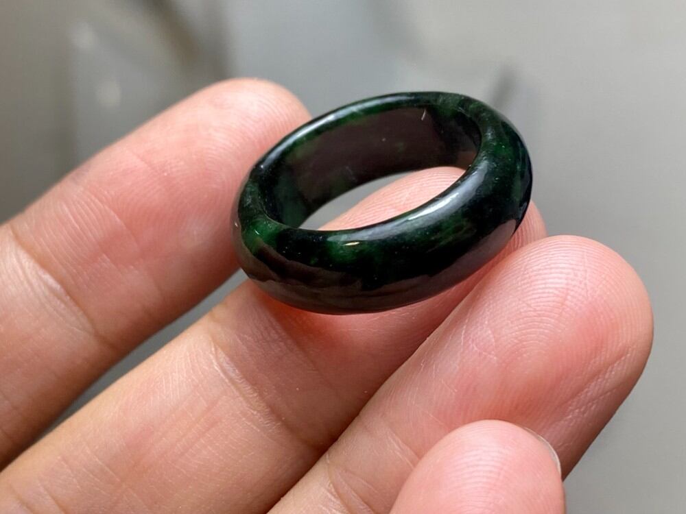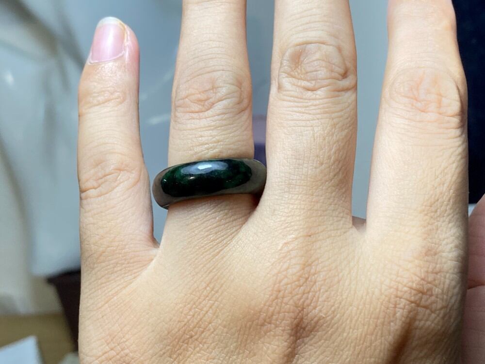 L7-135 一点物 墨緑色 13.5号 ミャンマー産天然 A貨 本翡翠 くりぬき リング