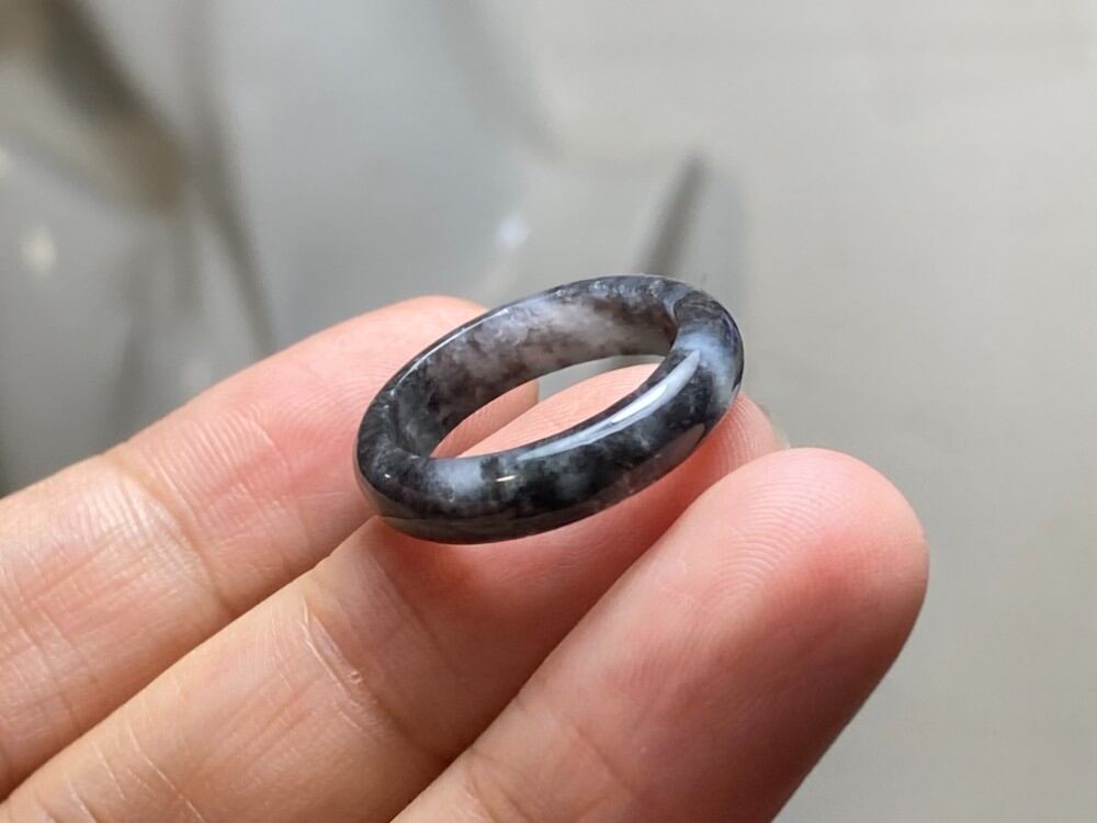 L7-155 美品 黒翡翠 14.0号 ミャンマー産天然 A貨 本翡翠 くりぬき リング