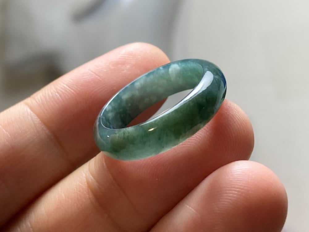 天然グアテマラ産 藍水 A貨 本翡翠 くりぬき リング
