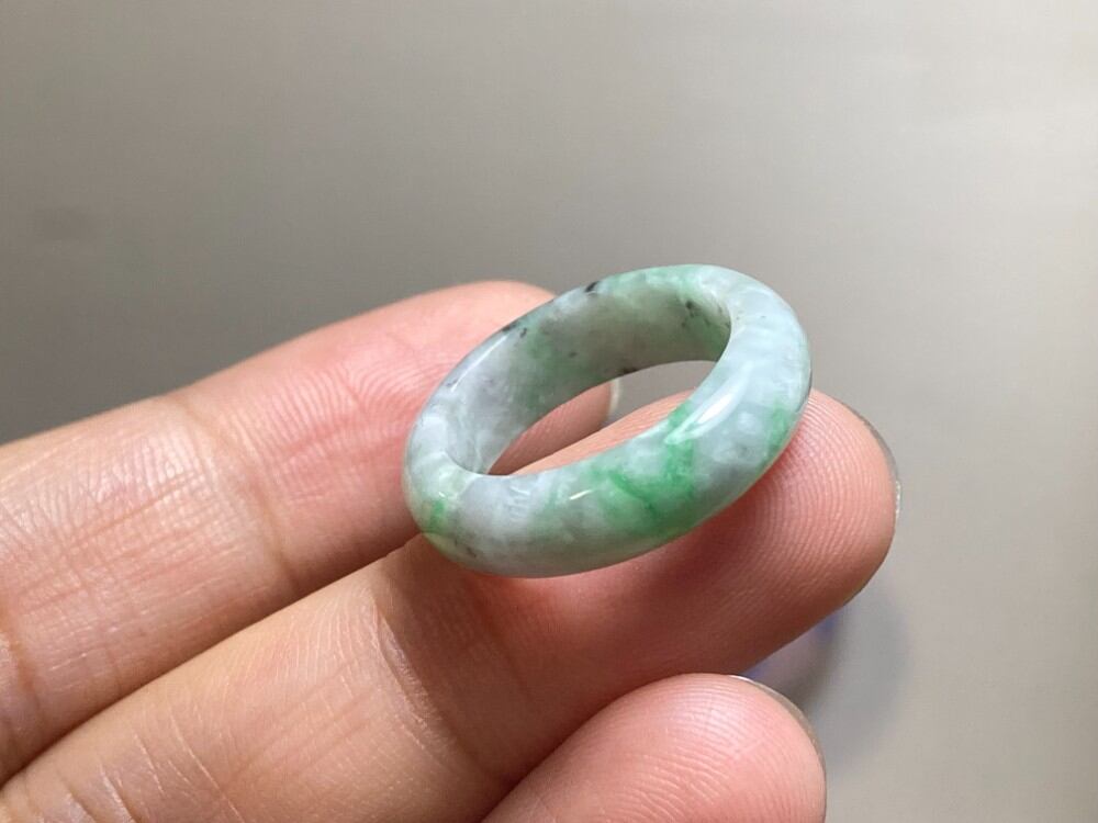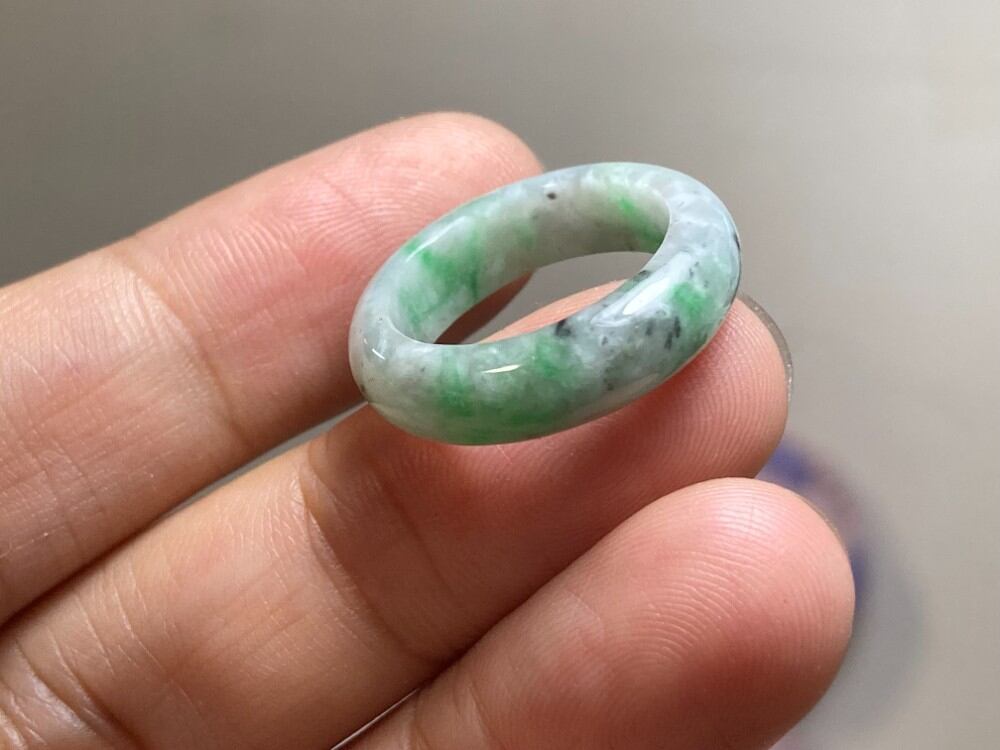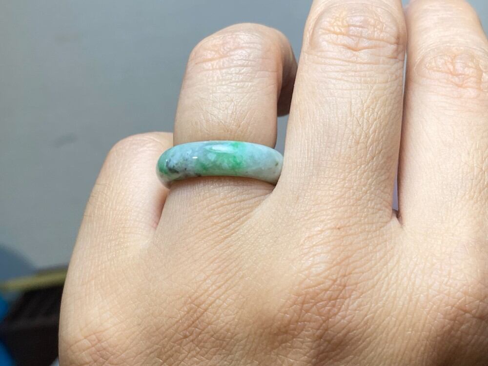 L9-10 美品 白底陽緑 10.5号 ミャンマー産天然 A貨 本翡翠 くりぬき リング