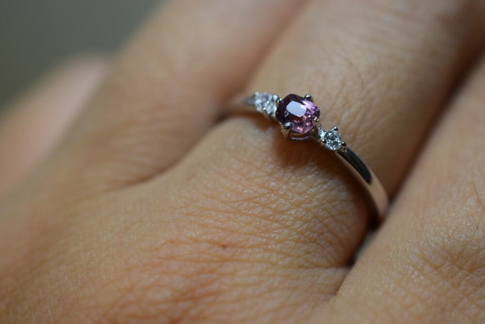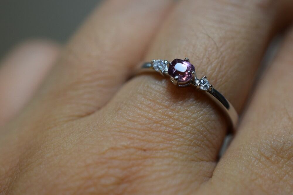 RS8-16 シルバー 上品 非加熱 宝石質 木槿花色 ミャンマー産 天然 スピネル フリーサイズ 金属アレルギー対応