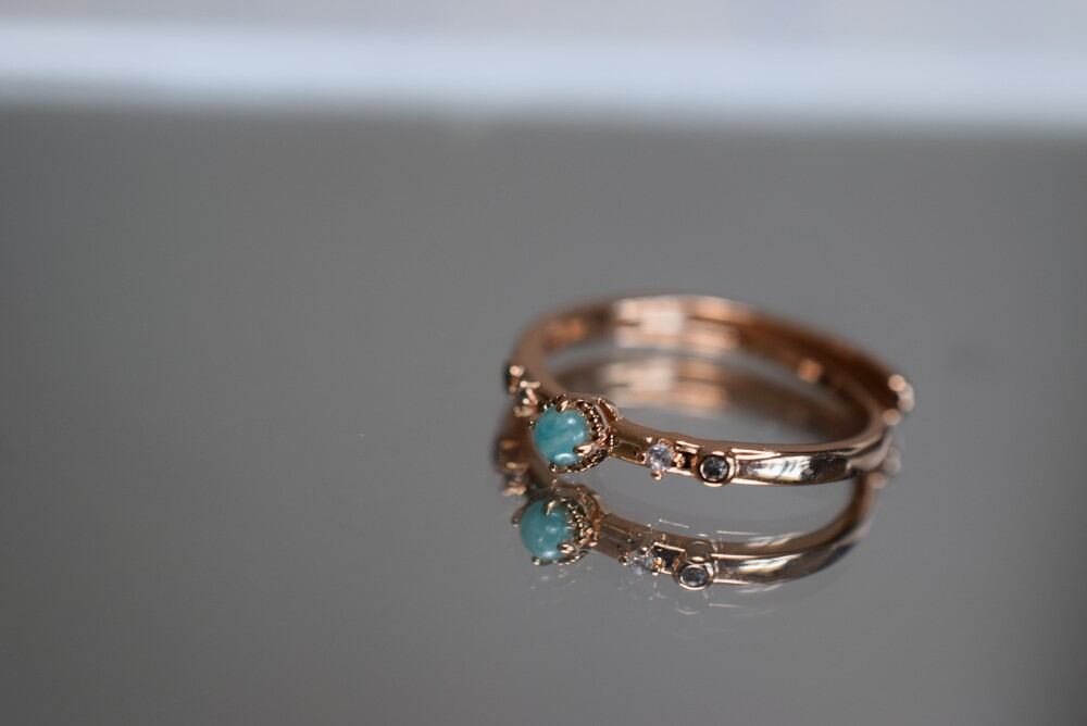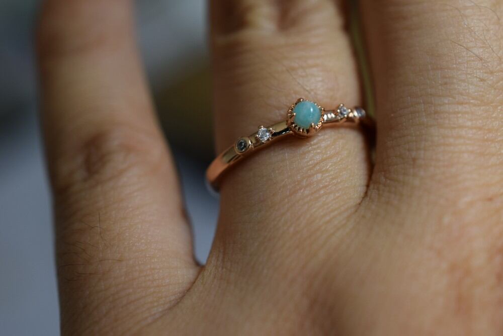 RS8-24 美品 ミニ アマゾナイト 天河石 リング 指輪 フリーサイズ 金属アレルギー対応