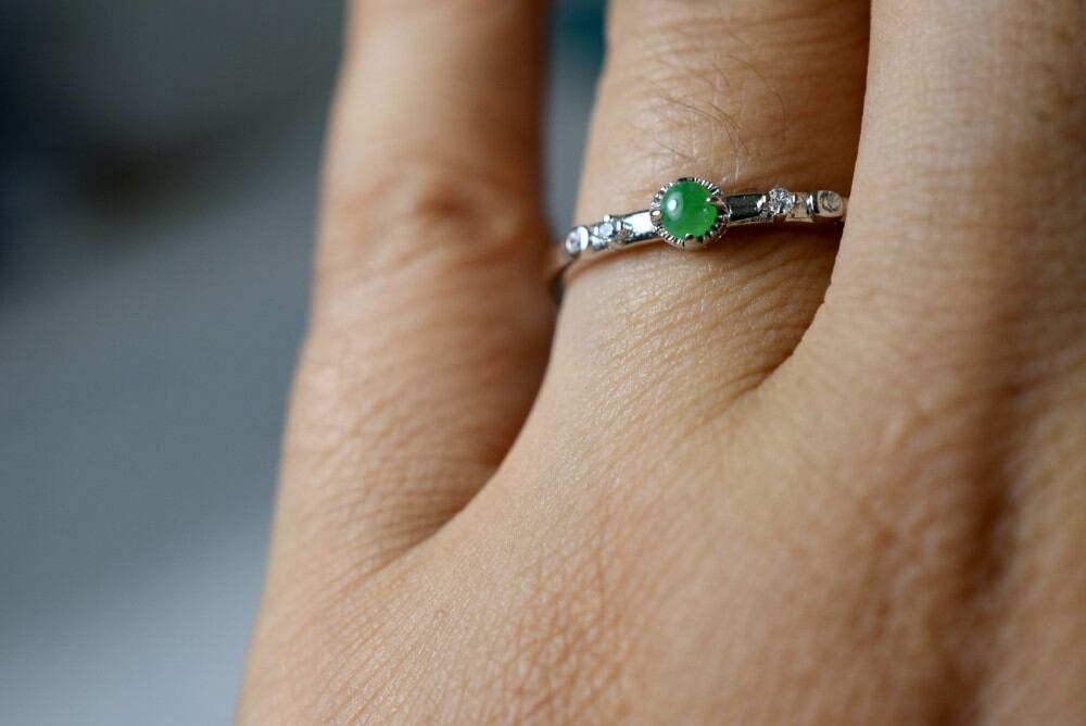 RS8-23 一点物 シルバー 氷種 陽緑 ミャンマー産 本翡翠 リング 指輪 フリーサイズ 金属アレルギー対応