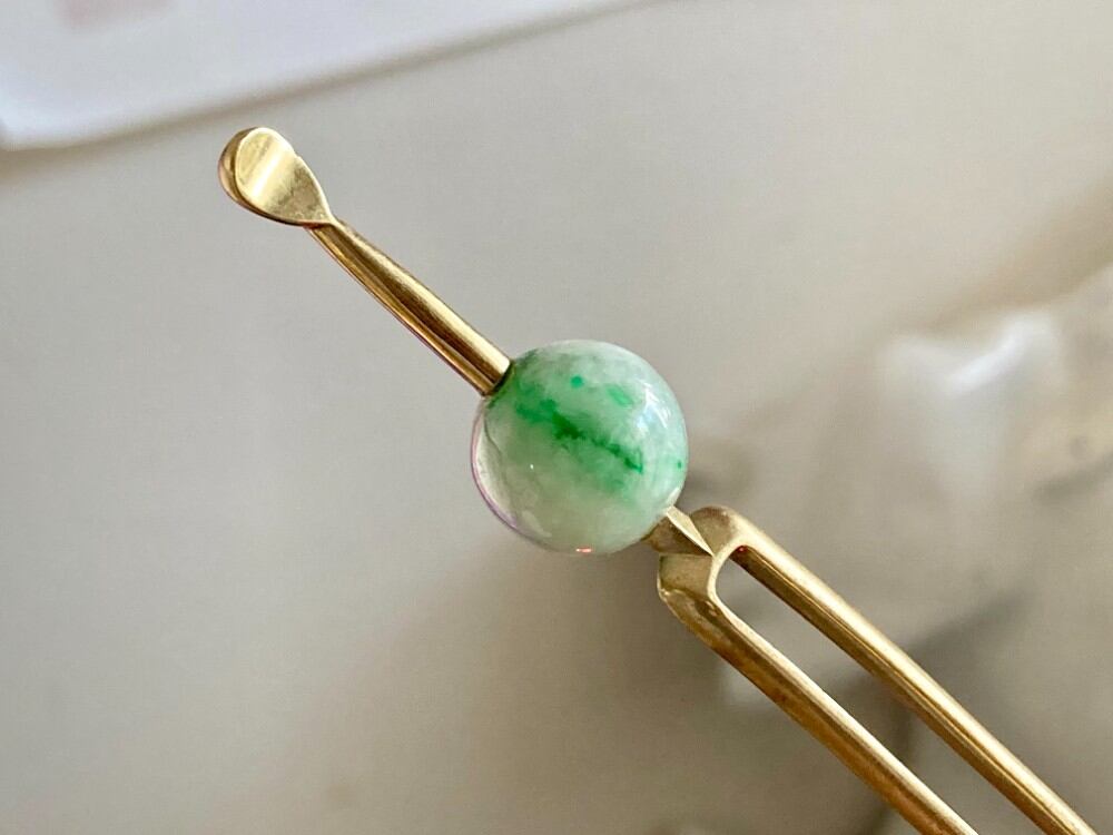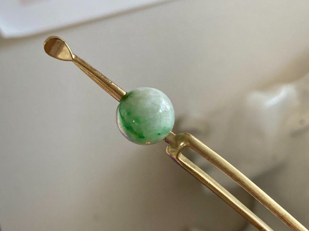 KZ4-38 一点物 白底陽緑 本翡翠 ミャンマー産 簪 かんざし 昭和風 2本