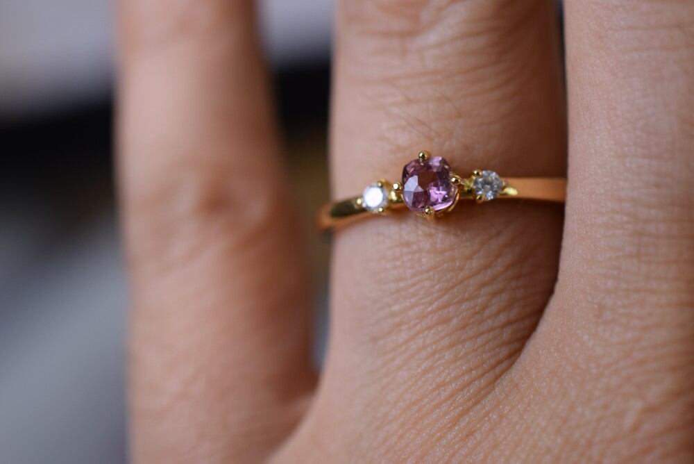 SR8-35 非加熱 宝石質 蘇芳紫色 天然 スピネル ミャンマー産 リング 指輪 フリーサイズ 金属アレルギー対応