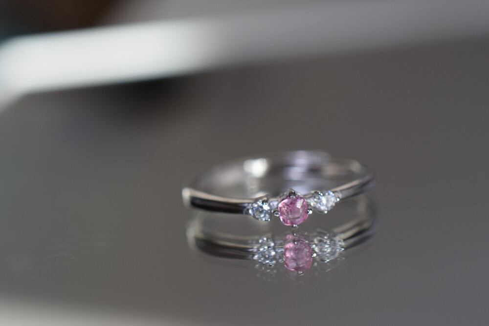 RS8-33 シルバー 非加熱 宝石質 桜ピンク色 ミャンマー産 天然 スピネル フリーサイズ 金属アレルギー対応