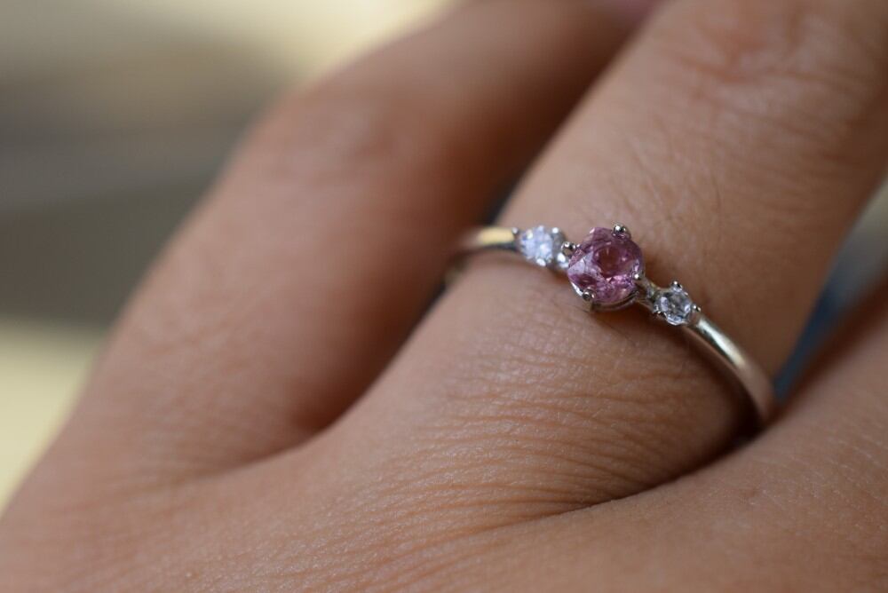 RS8-38 シルバー 非加熱 宝石質 桜ピンク色 ミャンマー産 天然 スピネル フリーサイズ 金属アレルギー対応