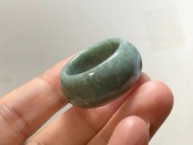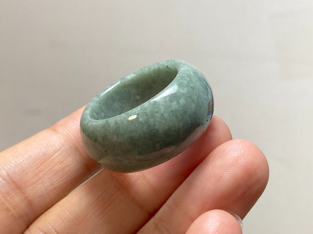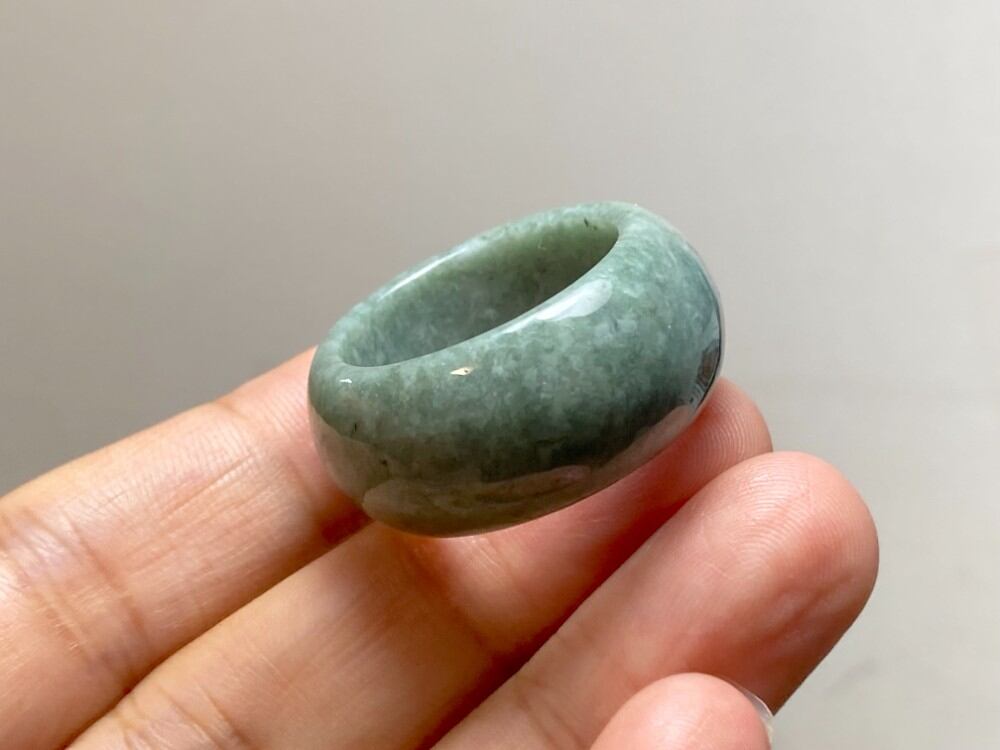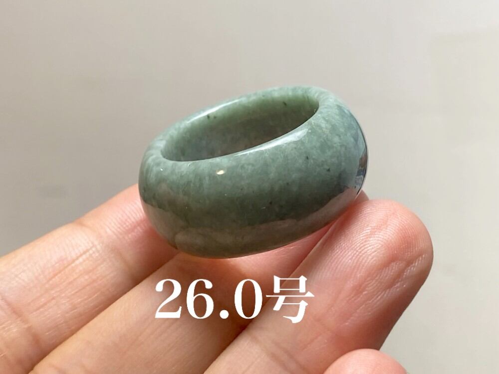L9-121 広幅 灰緑色 26.0号 ミャンマー産天然 A貨 本翡翠 くりぬき リング