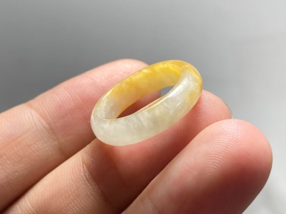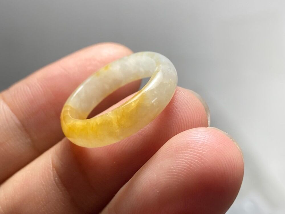 L9-136 特売 黄翡翠 11.0号 ミャンマー産天然 A貨 本翡翠 くりぬき リング