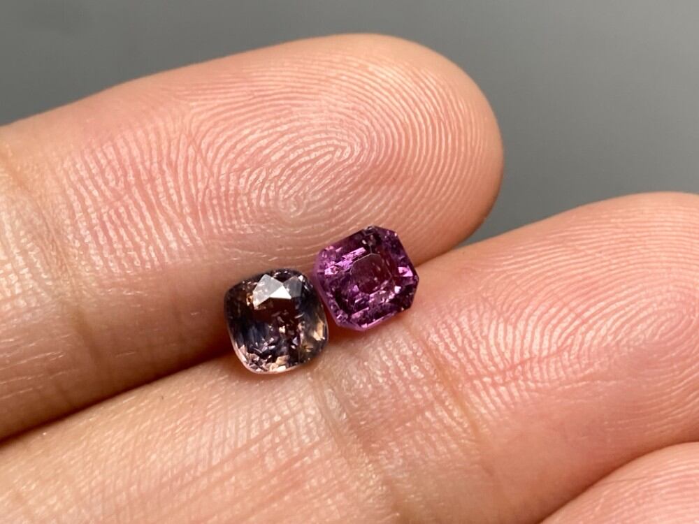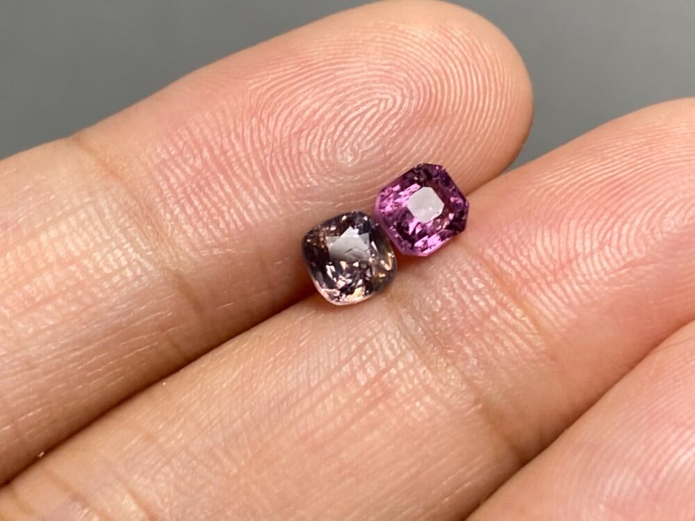 RS8-109 ペア 一点物 非加熱 藤色 灰ピンク スピネル ミャンマー産 ルース