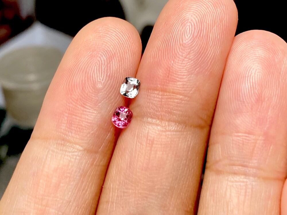 RS8-111 ペア 宝石質 一点物 非加熱 金属灰 ピンク スピネル ミャンマー産 ルース