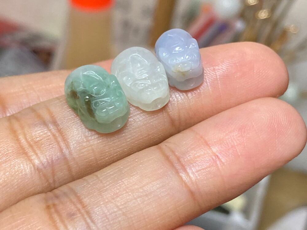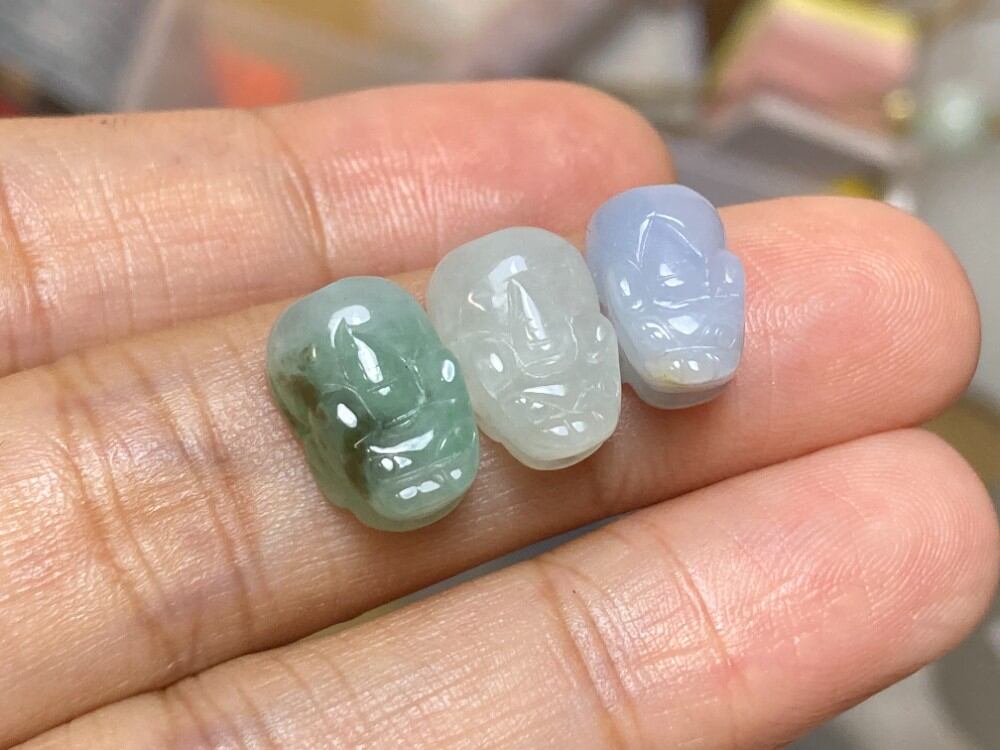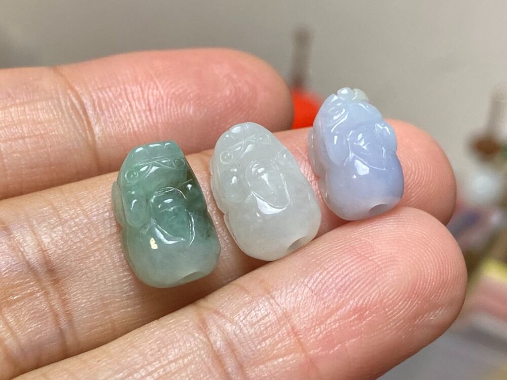 3点セット 通穴 貔貅 ラベンダー 花緑 白瓷 本翡翠 ミャンマー産 A貨 財布貔貅 御守、一点物です