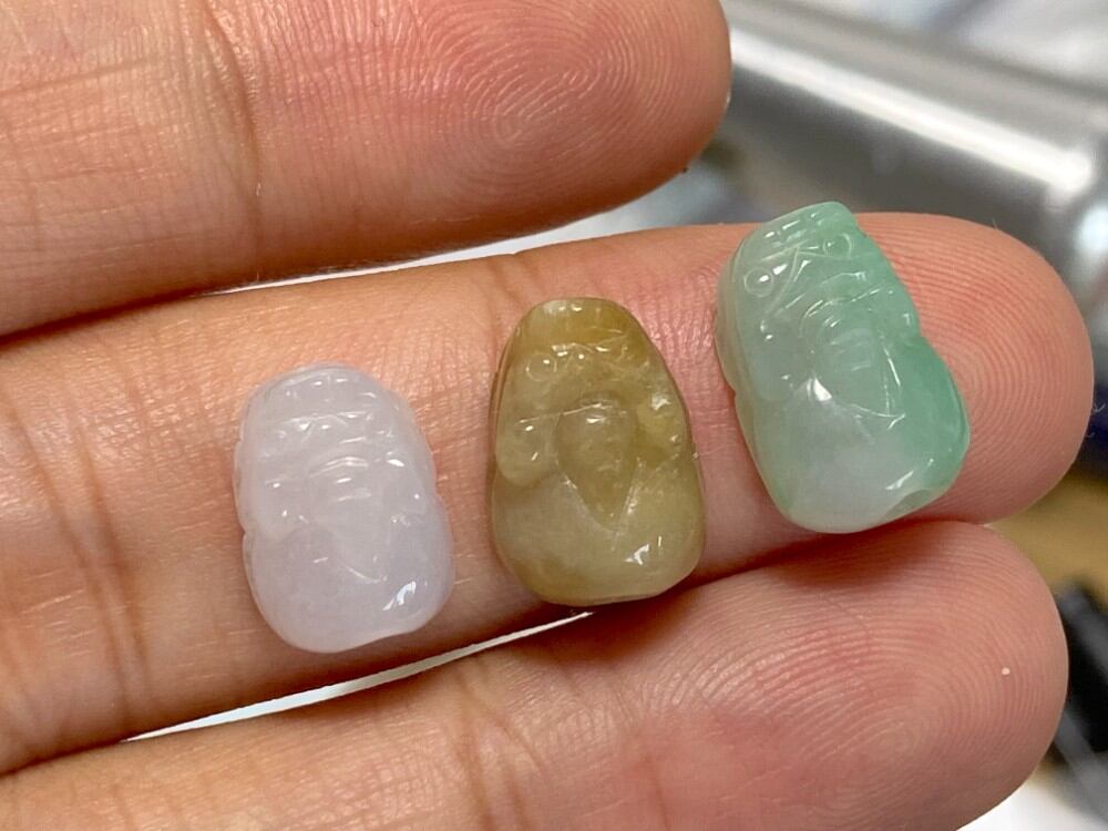 3点セット 通穴 貔貅 白瓷 黄色 薄緑 本翡翠 ミャンマー産 A貨 財布貔貅 御守、一点物です