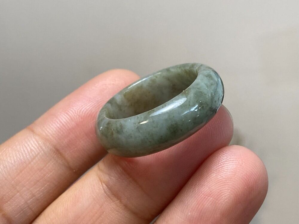 L9-147 グレー 19.5号 ミャンマー産天然 A貨 本翡翠 くりぬき リング
