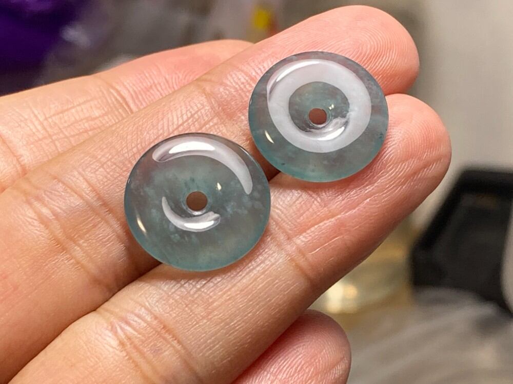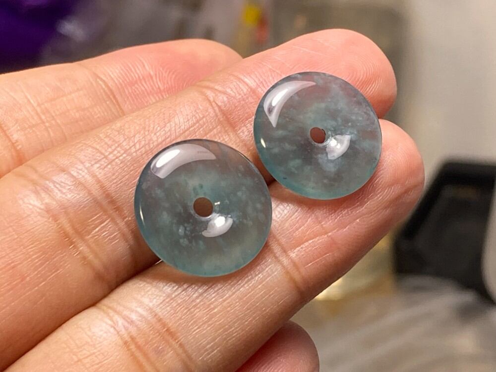 RS8-157 美品 氷種 氷灰藍飃雪花 玉壁 平安守り ドグアテマラ産 A貨 本翡翠 ルース 硬玉 ジェダイト