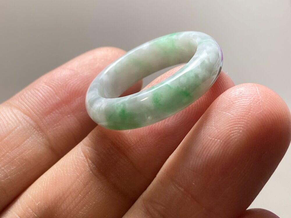 L9-171 美品 白底陽緑 16.5号 ミャンマー産天然 A貨 本翡翠 くりぬき リング
