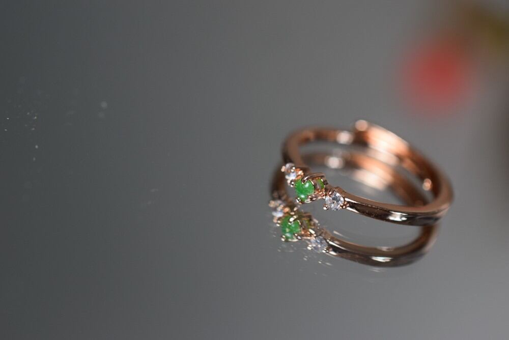SR8-43 氷種 ミニ 陽緑 天然 本翡翠 リング 指輪 フリーサイズ 金属アレルギー対応