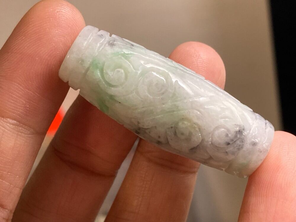 RS8-166 大粒 彫り花天珠 ミャンマー産 A貨 本翡翠 ルース 裸石 硬玉 ジェダイト