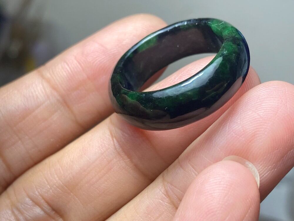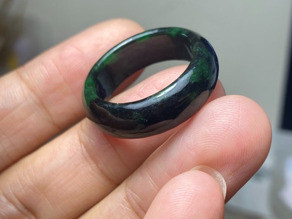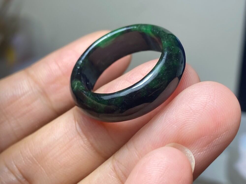 L9-192 一点物 墨緑色 16.5号 ミャンマー産天然 A貨 本翡翠 くりぬき リング