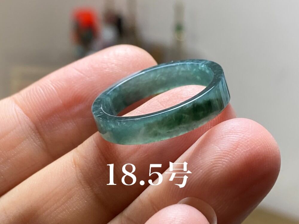L9-202 美品 青色 18.5号 天然グアテマラ産 A貨 本翡翠 くりぬき リング