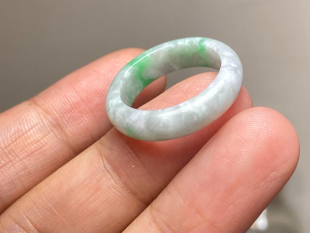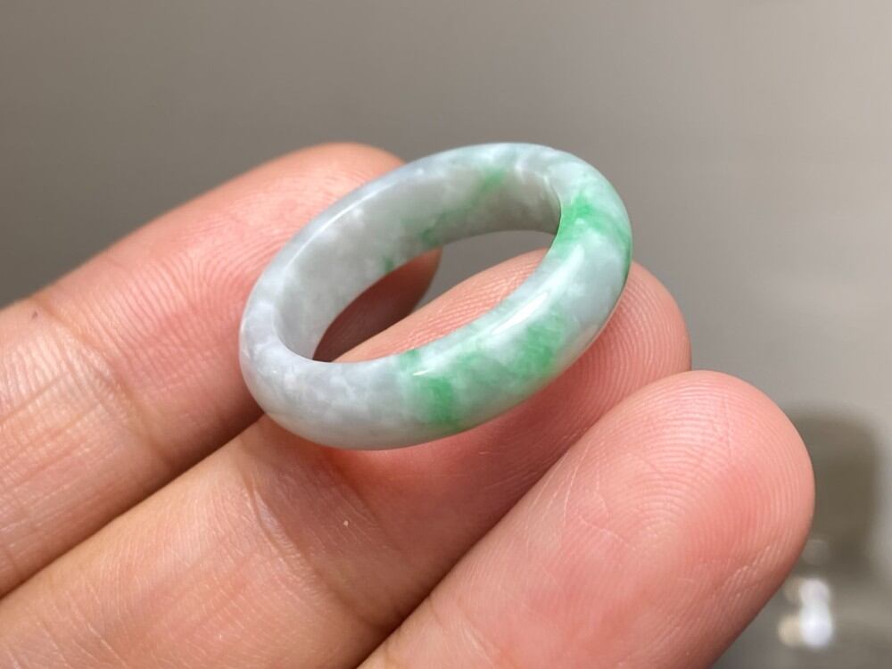 L9-204 美品 白底陽緑 16.5号 ミャンマー産天然 A貨 本翡翠 くりぬき リング