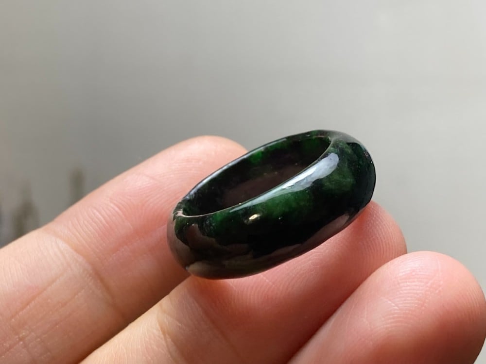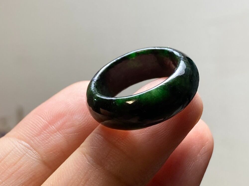L9-208 一点物 墨緑色 13.5号 ミャンマー産天然 A貨 本翡翠 くりぬき リング