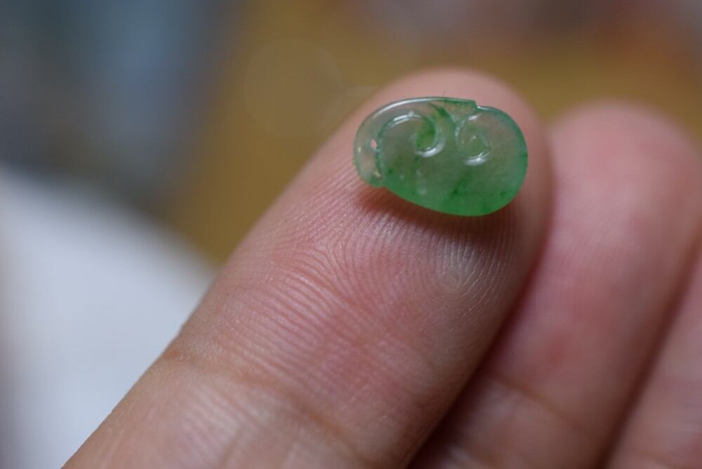 穴開ける ミニ 氷種 若緑 如意 天然ミャンマー産 A貨 本翡翠 ルース、ビビ、傷なし、完璧の美品です