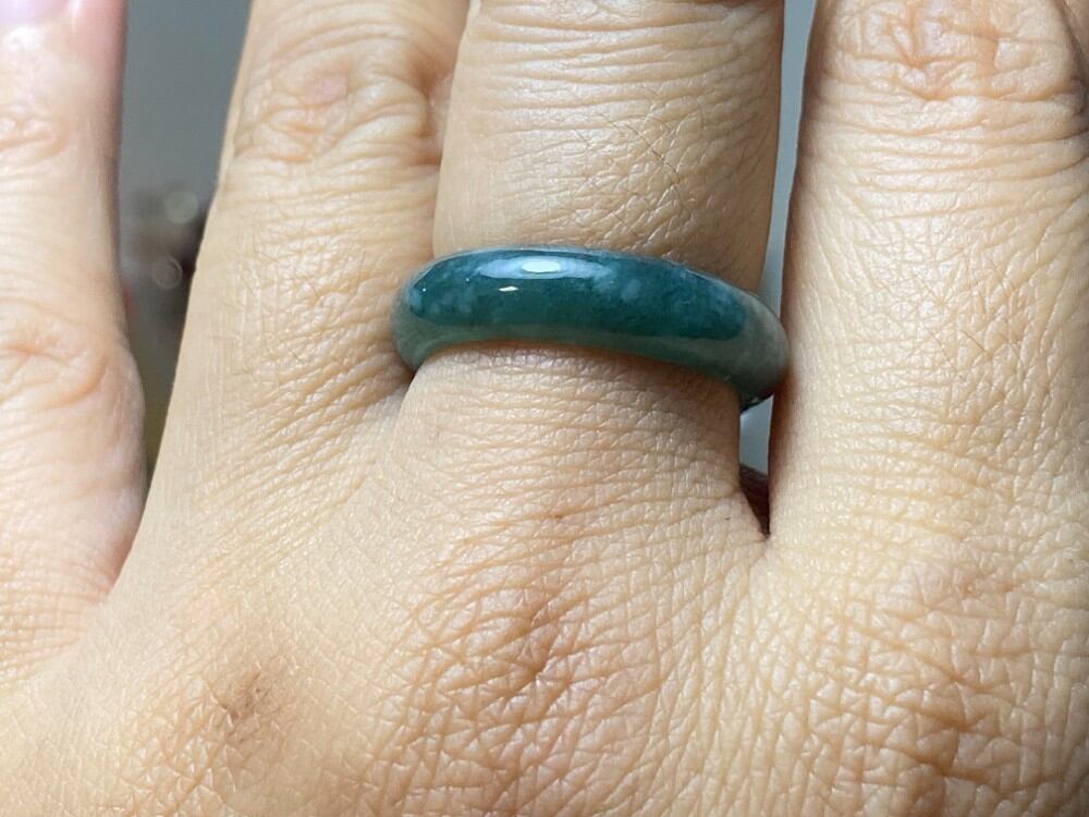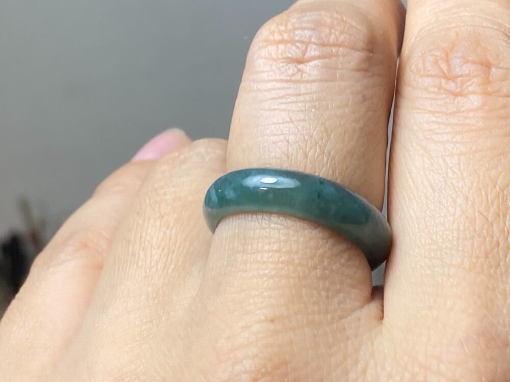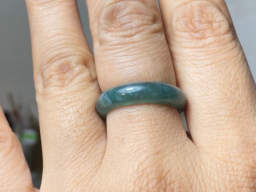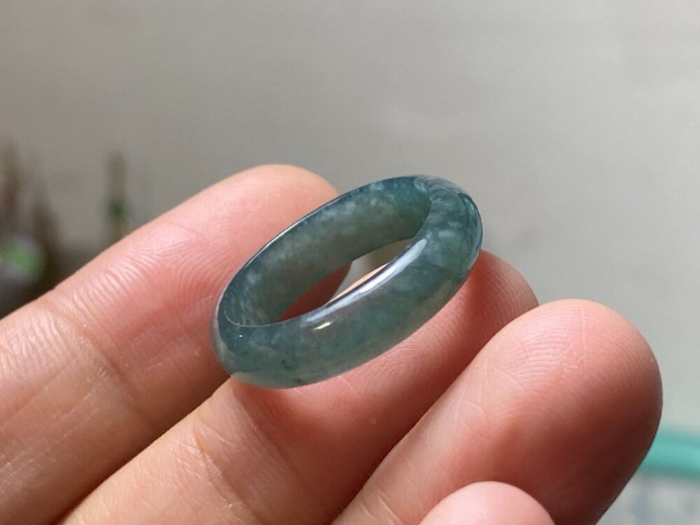 L9-215 美品 灰藍色 15.5号 天然グアテマラ産 A貨 本翡翠 くりぬき リング