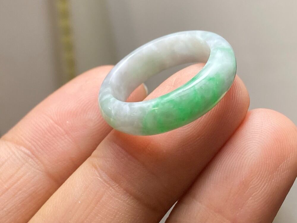 L10-39 美品 白底陽緑 13.5号 ミャンマー産天然 A貨 本翡翠 くりぬき リング