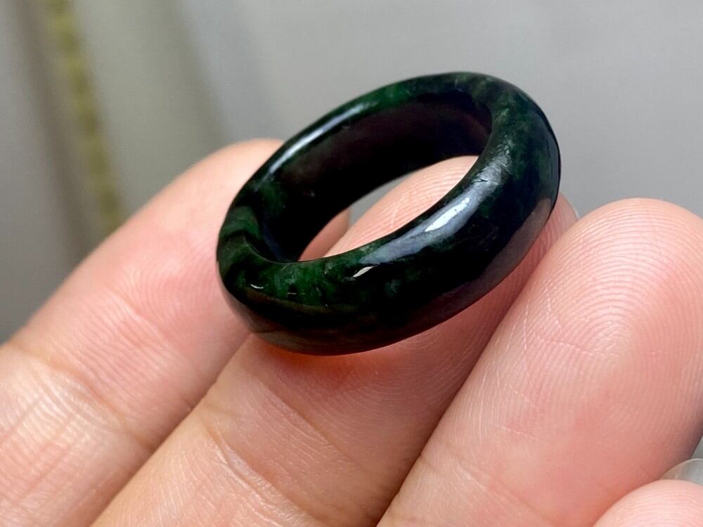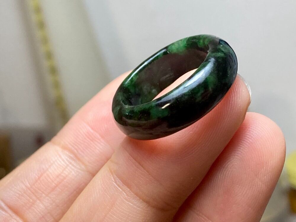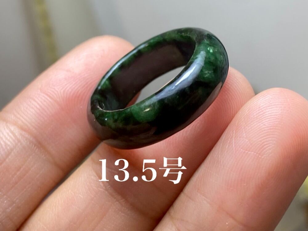 L10-37 一点物 黒緑 13.5号 ミャンマー産天然 A貨 本翡翠 くりぬき リング