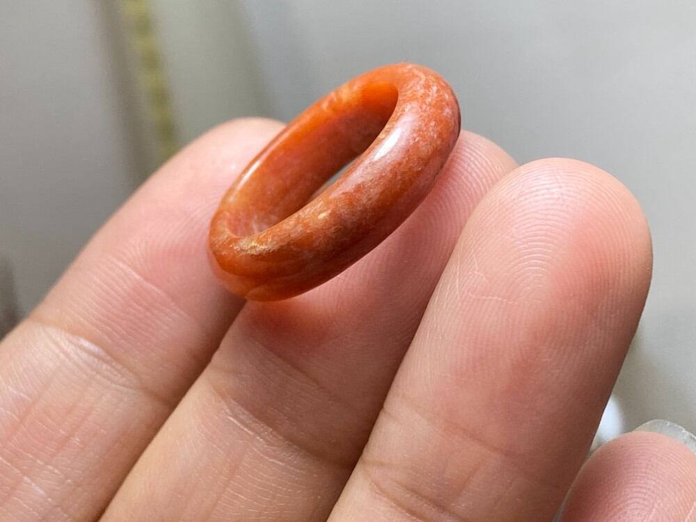 L10-34 訳あり処分品 赤翡翠 11.0号 ミャンマー産天然 A貨 本翡翠 くりぬき リング