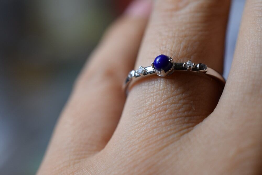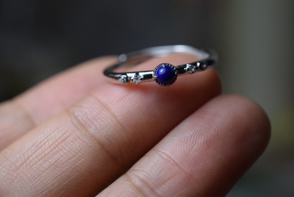 SR8-56 シルバー ミニ 天然 ラピスラズリ 青金石 リング 指輪 フリーサイズ 金属アレルギー対応