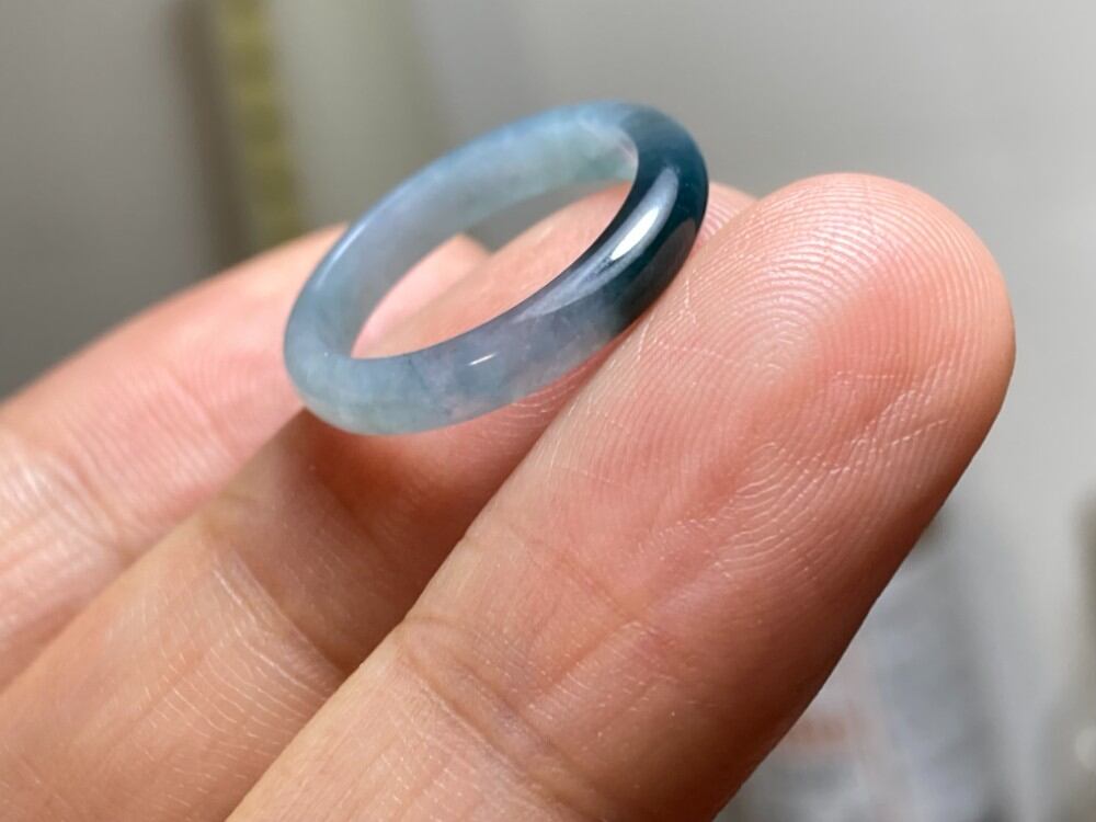 L10-49 ピンキーリング 氷糯種 氷灰藍 7.5号 天然グアテマラ産 A貨 本翡翠 くりぬき リング