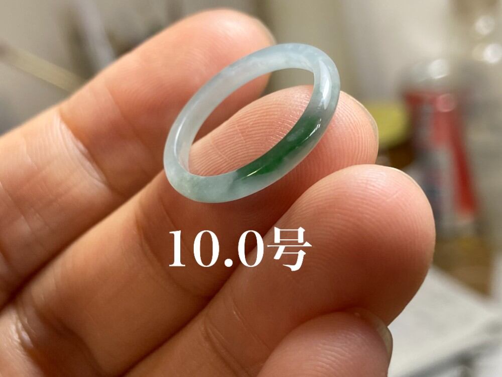 L10-50 ピンキーリング 氷糯種 薄水色 陽緑 10.0号 天然グアテマラ産 A貨 本翡翠 くりぬき リング