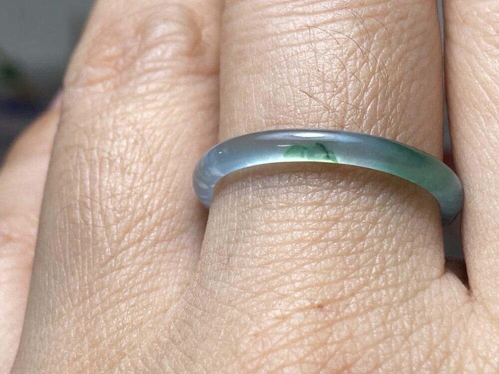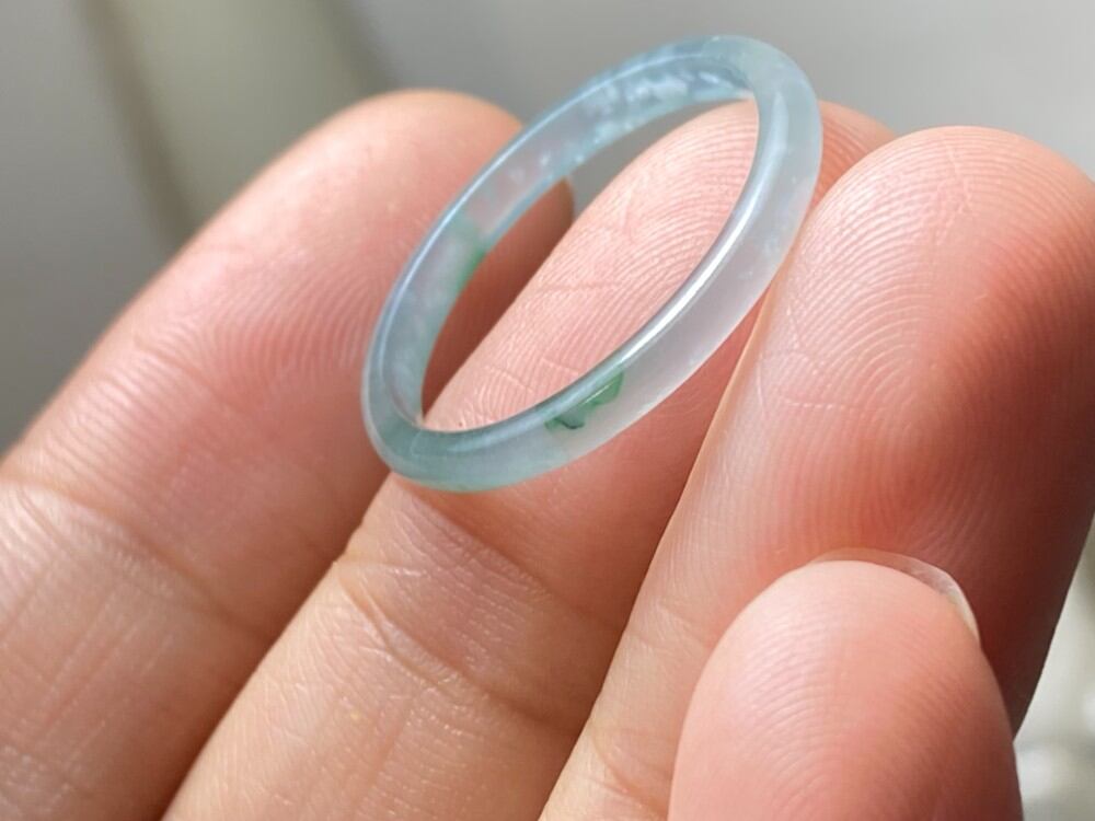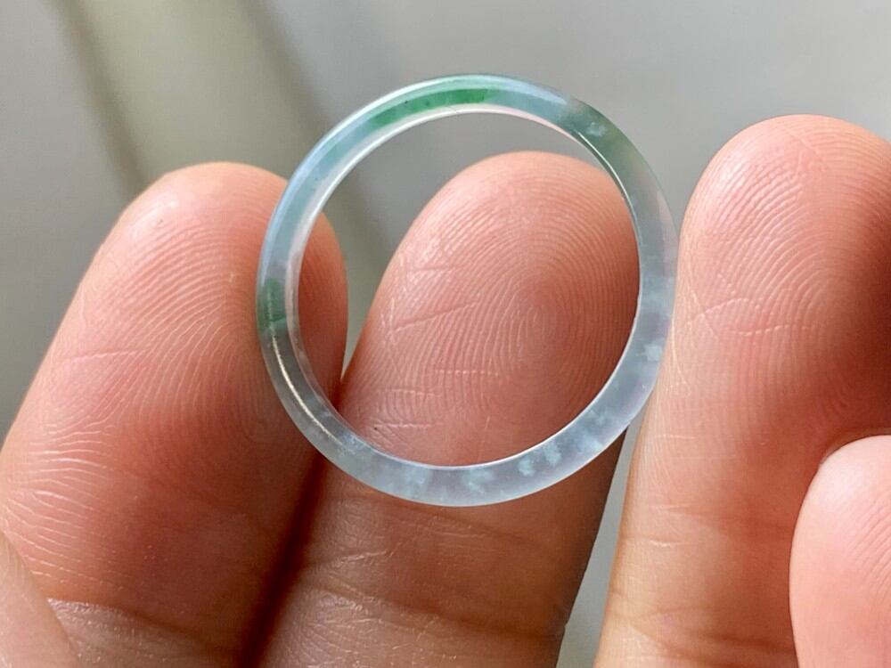 L10-55 細身高氷種 薄水色 陽緑 17.0号 天然グアテマラ産 A貨 本翡翠 くりぬき リング