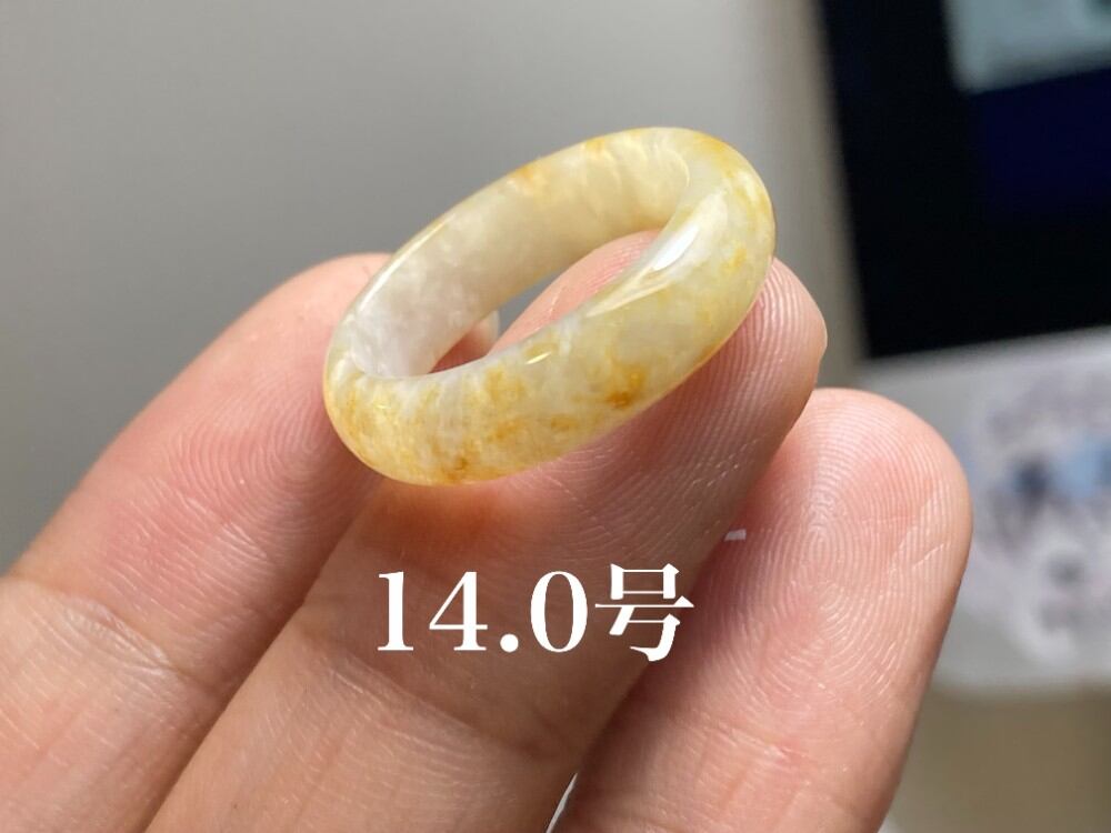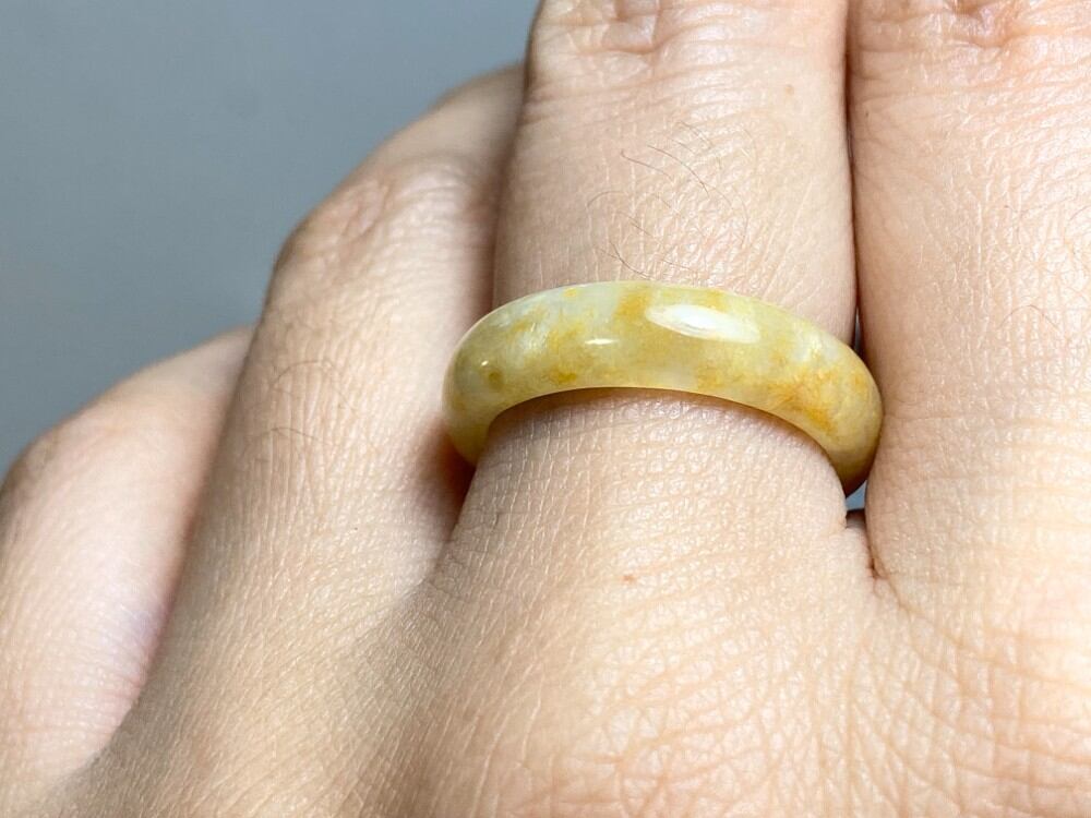 L10-71 美品 黄翡翠 14.0号 ミャンマー産天然 A貨 本翡翠 くりぬき リング