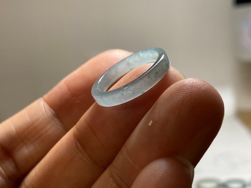L10-68 ピンキーリング 氷糯種 薄水色 7.5号 天然グアテマラ産 A貨 本翡翠 くりぬき リング