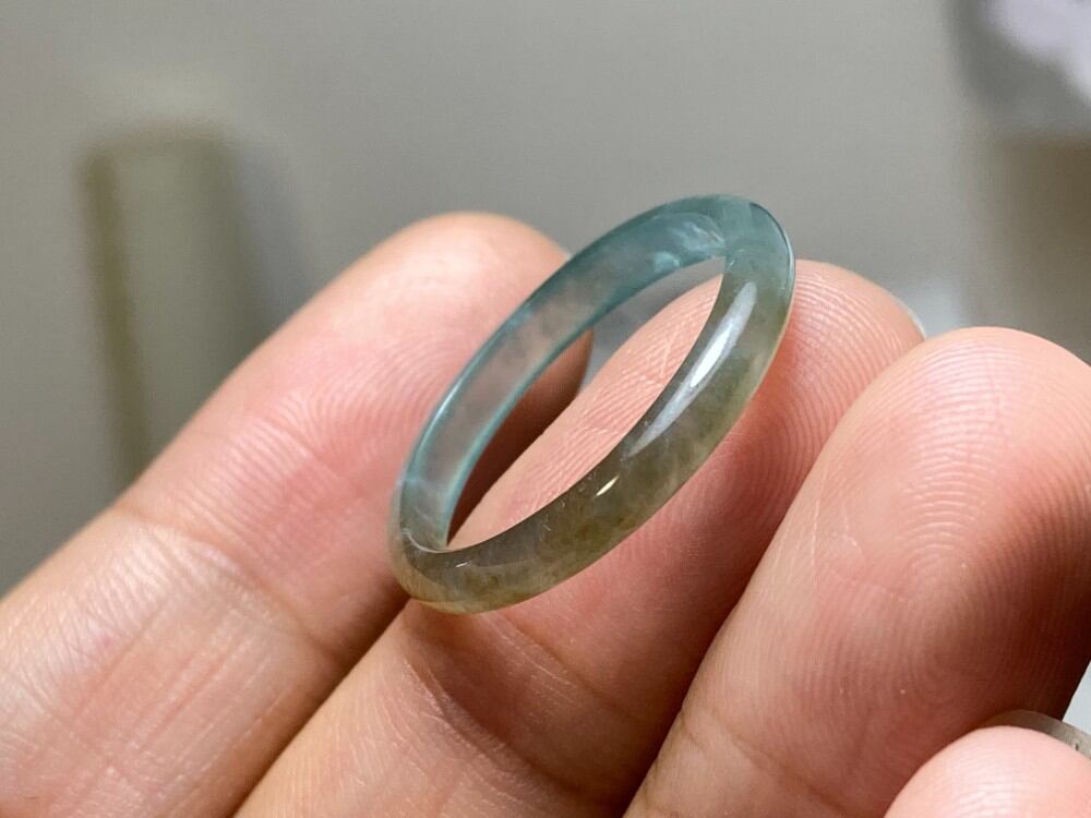 L10-78 氷種 灰青色 21.5号 天然グアテマラ産 A貨 本翡翠 くりぬき リング