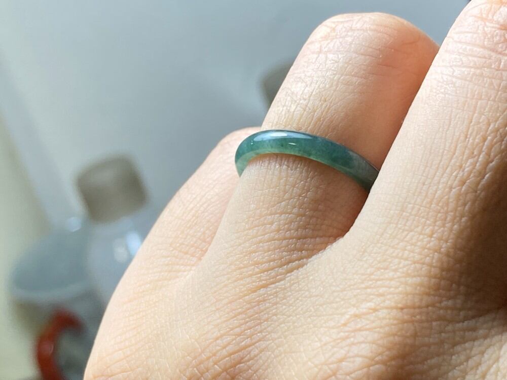 L10-121 美品 灰藍色 11.5号 天然グアテマラ産 A貨 本翡翠 くりぬき リング