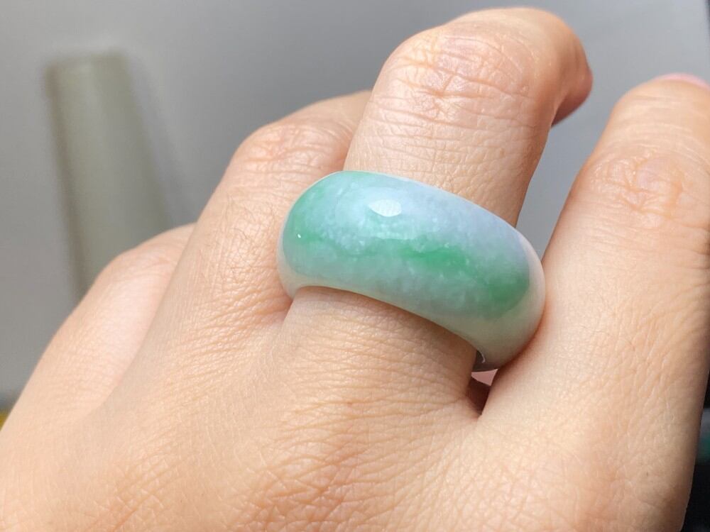 L10-127 特売 白底飃緑花 21.5号 ミャンマー産天然 A貨 本翡翠 くりぬき リング