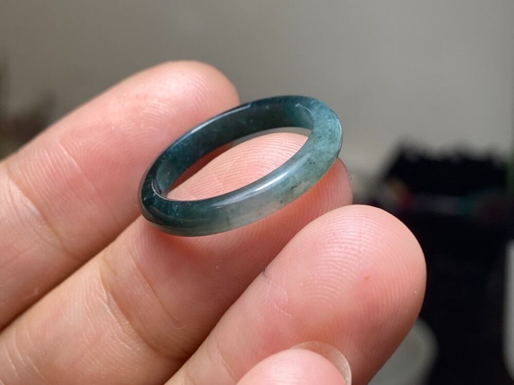 L10-153 美品 深灰藍色 13.0号 天然グアテマラ産 A貨 本翡翠 くりぬき リング