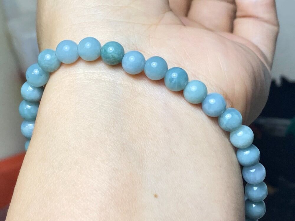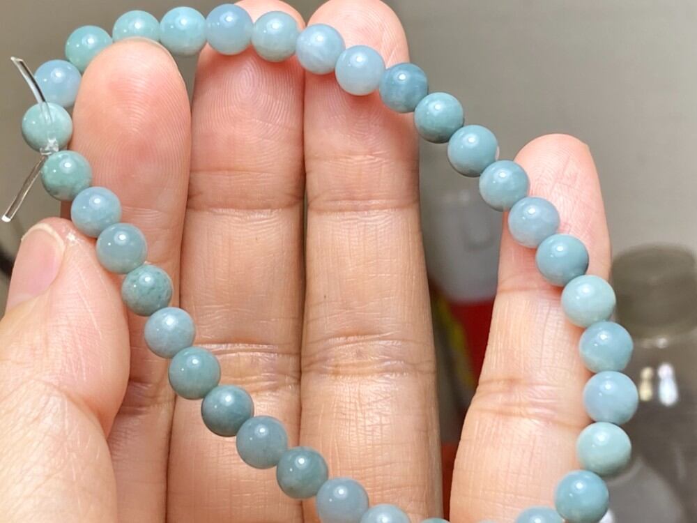 BR7-07 青灰色 6.0mm グアテマラ産 天然 本翡翠 ブレスレット
