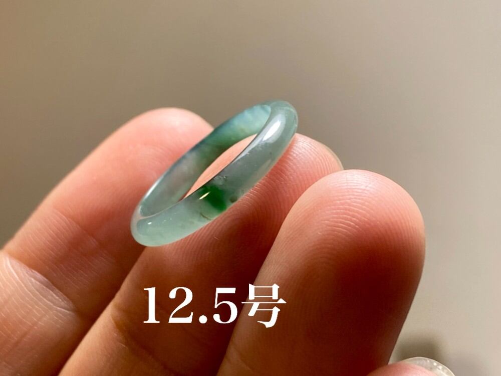 L10-171 氷糯種 藍緑底辣緑 12.5号 天然グアテマラ産 A貨 本翡翠 くりぬき リング