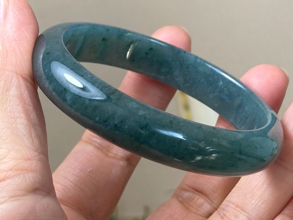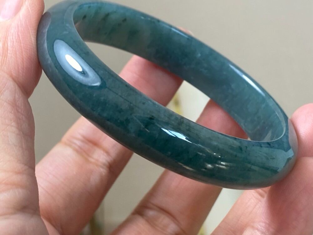 BG9-09 美品 糯氷種 深灰藍 53.2MM グアテマラ産 本翡翠 バングル
