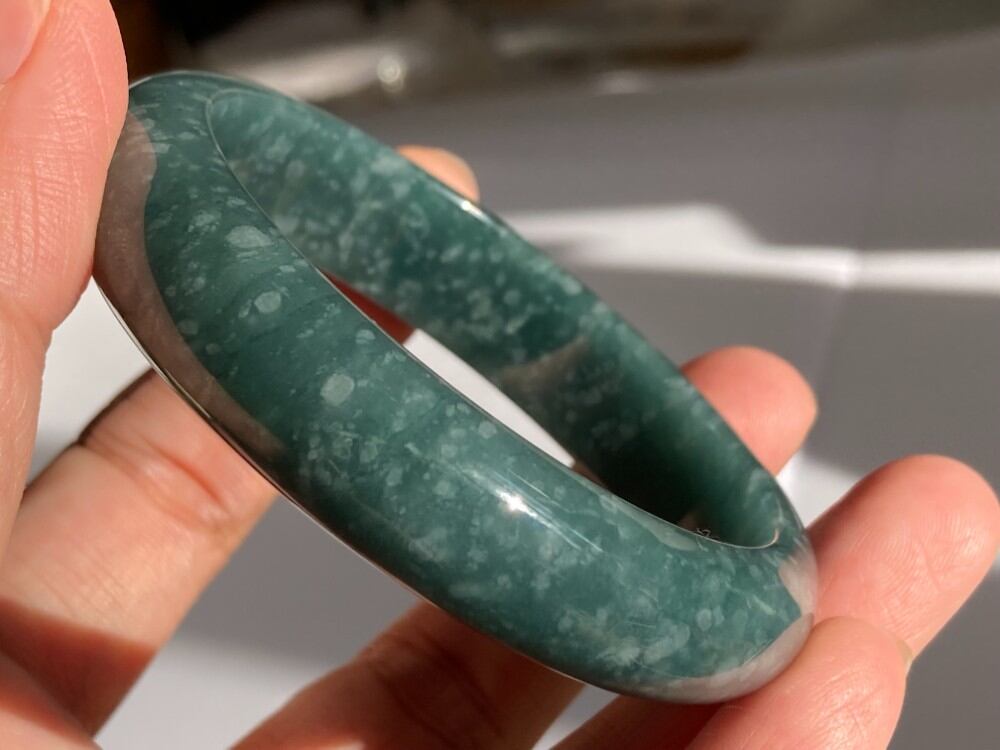 BG9-12 美品 糯氷種 深灰藍飃雪花 53.8MM グアテマラ産 本翡翠 バングル