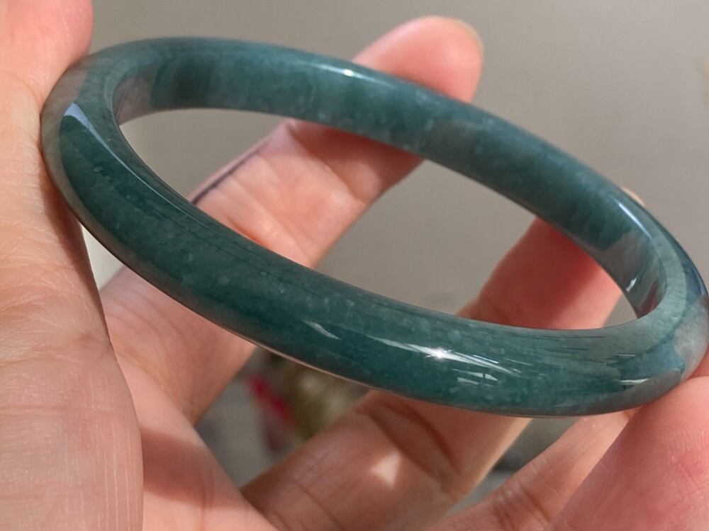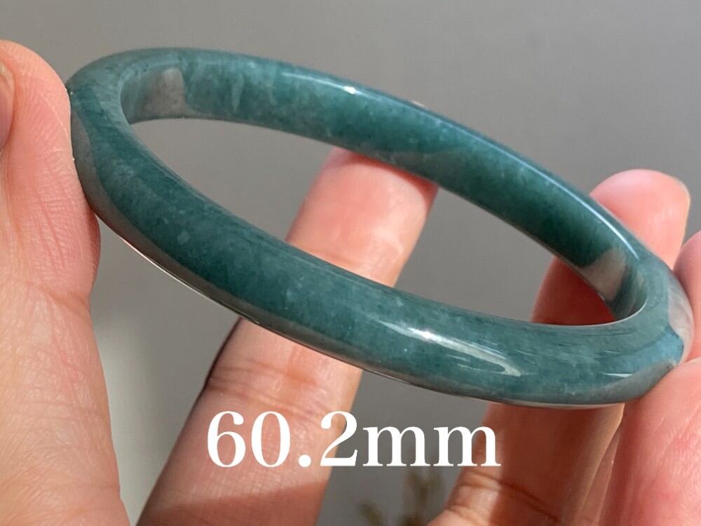 BG9-13 美品 氷糯種 青灰色 60.2MM グアテマラ産 本翡翠 バングル